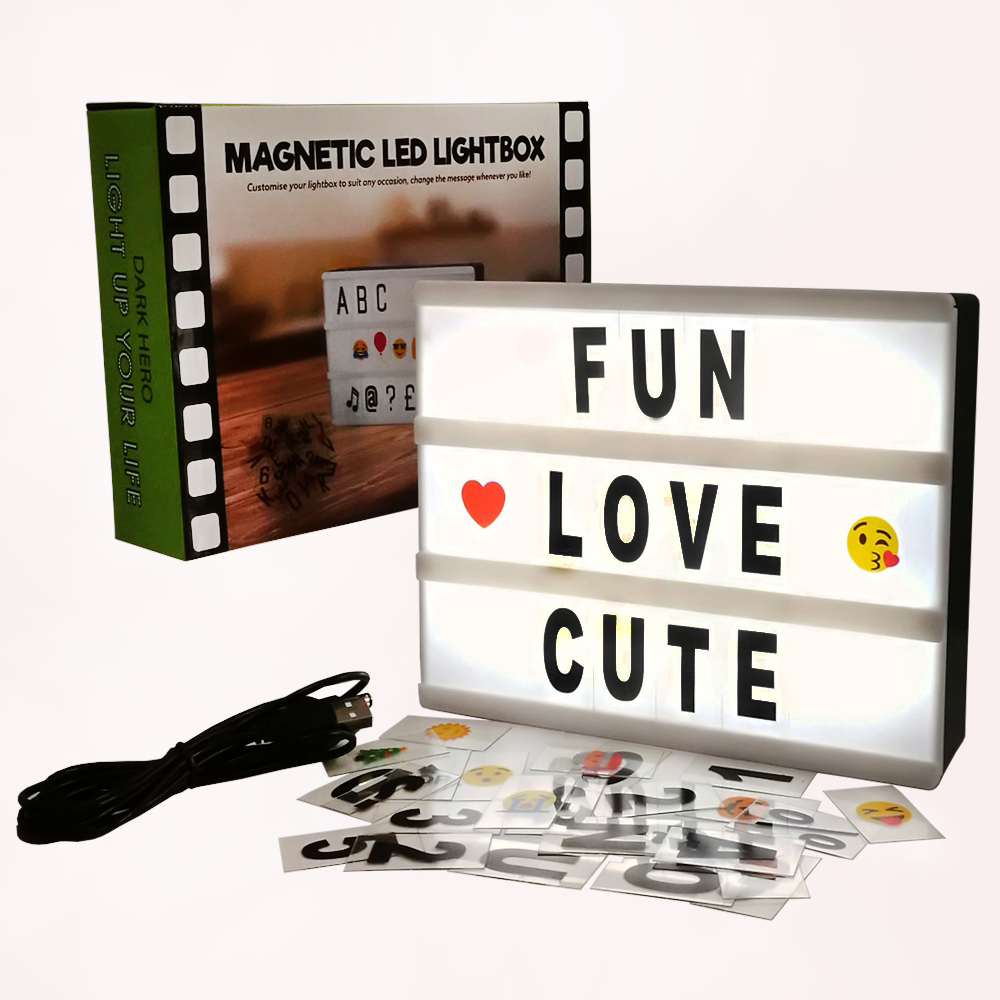 A5 LED Cinematic Light Box with 159 Letters, Emojis and 1pc Blank sheet for you DIY: