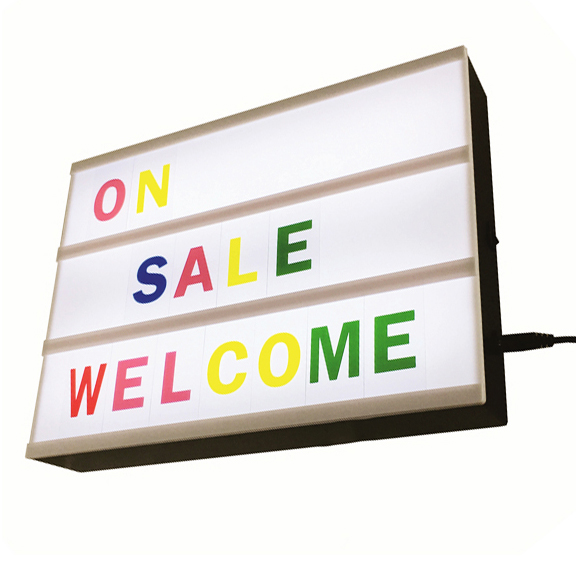 - Decorative battery powered LED light box with 85 letters and symbols for making your very own fun messages.