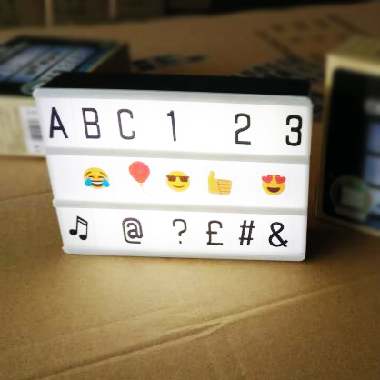- Decorative battery powered LED light box with 85 letters and symbols for making your very own fun messages.