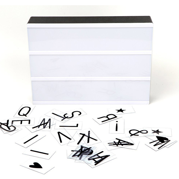 - Decorative battery powered LED light box with 85 letters and symbols for making your very own fun messages.