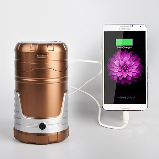 GG-7088 Collapsible portable rechargeable 1W 6 led camping solar lantern with mobile phone charger