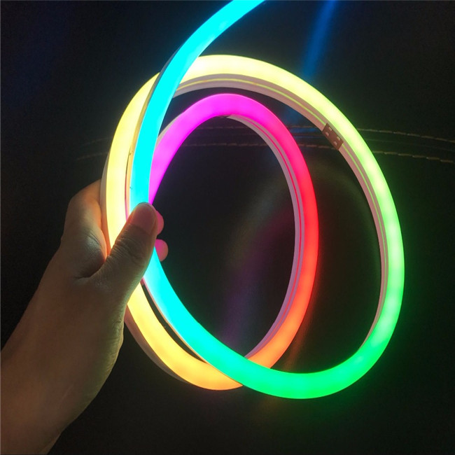 RGB LED Neon Light is the latest decorative light with the photoelectric technology. It combined Neon light controller with Tricolor (RGB) LED light source, having the characteristics of the full color gradual changing of LED Digital Tube and dynamic brightness of neon light, as well as the effects of synchronous gradual full color changing, skip changing, water flow changing, pursuing and sweeping and so on. Its appearance will replace LED digital Tube series and LED rope light series completely.