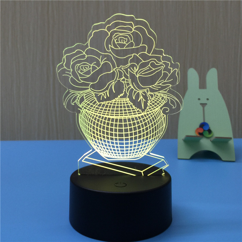 - OEM 3D Night Lamp Rose Shape 3D LED Night Light 3d illusion lamp