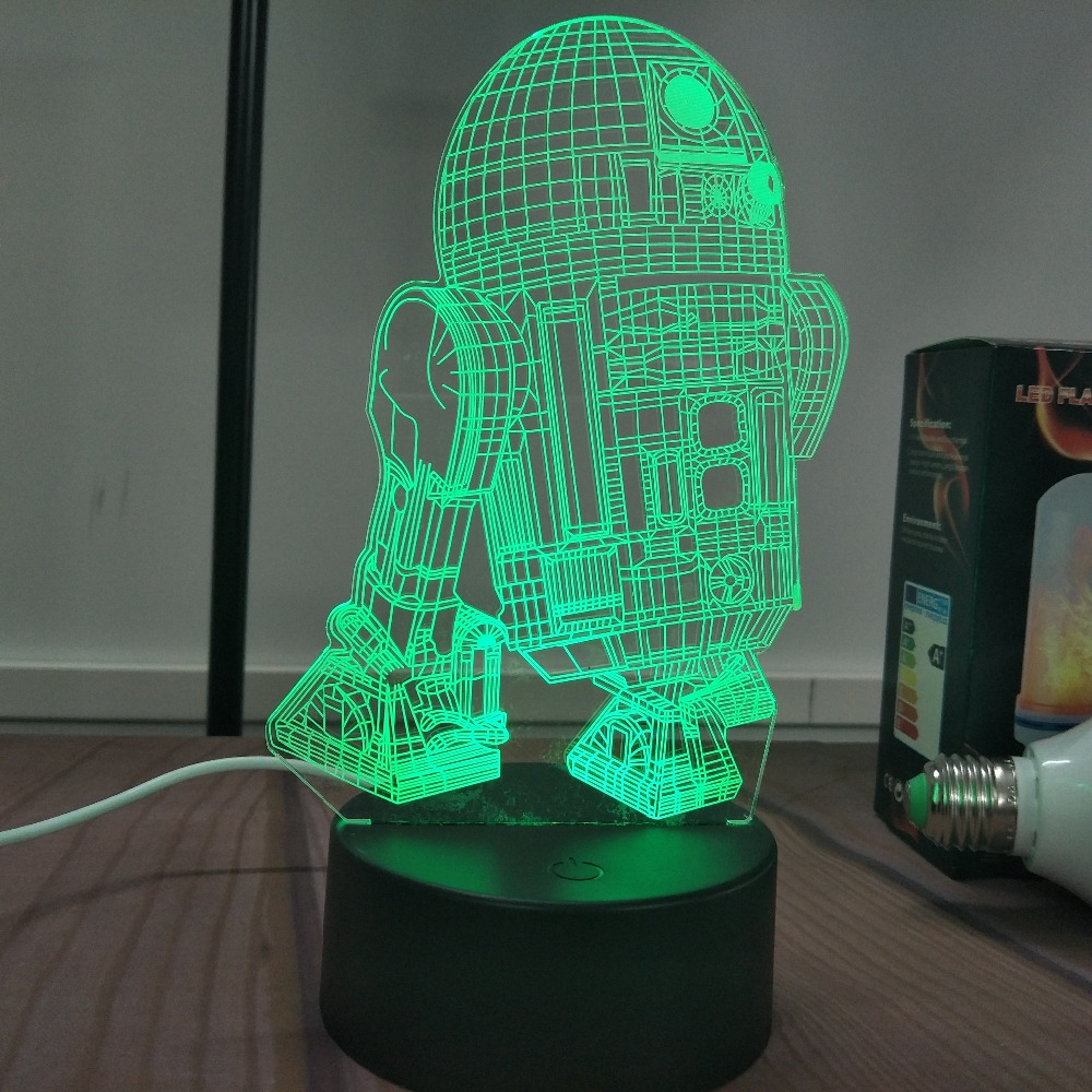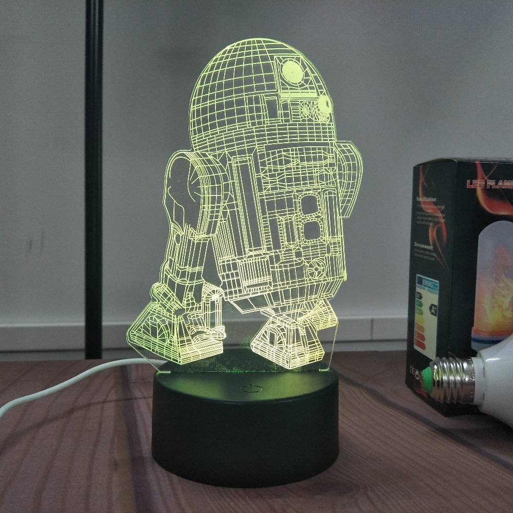 R2-D2 Droid Night Light 3D LED illusion 7 Color Touch Button Desk Lamp Room Decor Light