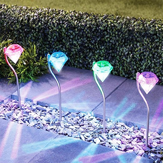 Solar Garden Lights Outdoor - Waterproof Color changing Diamond LED Solar Garden Pathway Lights for Home, Yard, Lawn