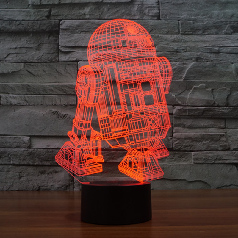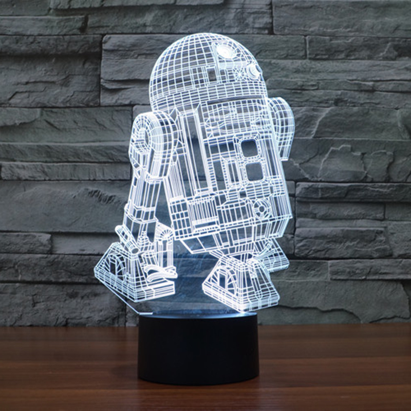 New Action Figure 7colors Robot R2D2 3D Visual LED Night Lights for Kids Bedroom Table Desk Lamp