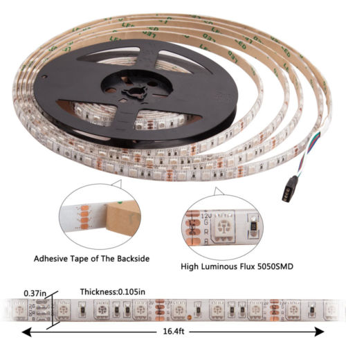16.5FT SMD 5050 RGB white Waterproof 300 LED Flexible 3M Tape Strip Light DC12V