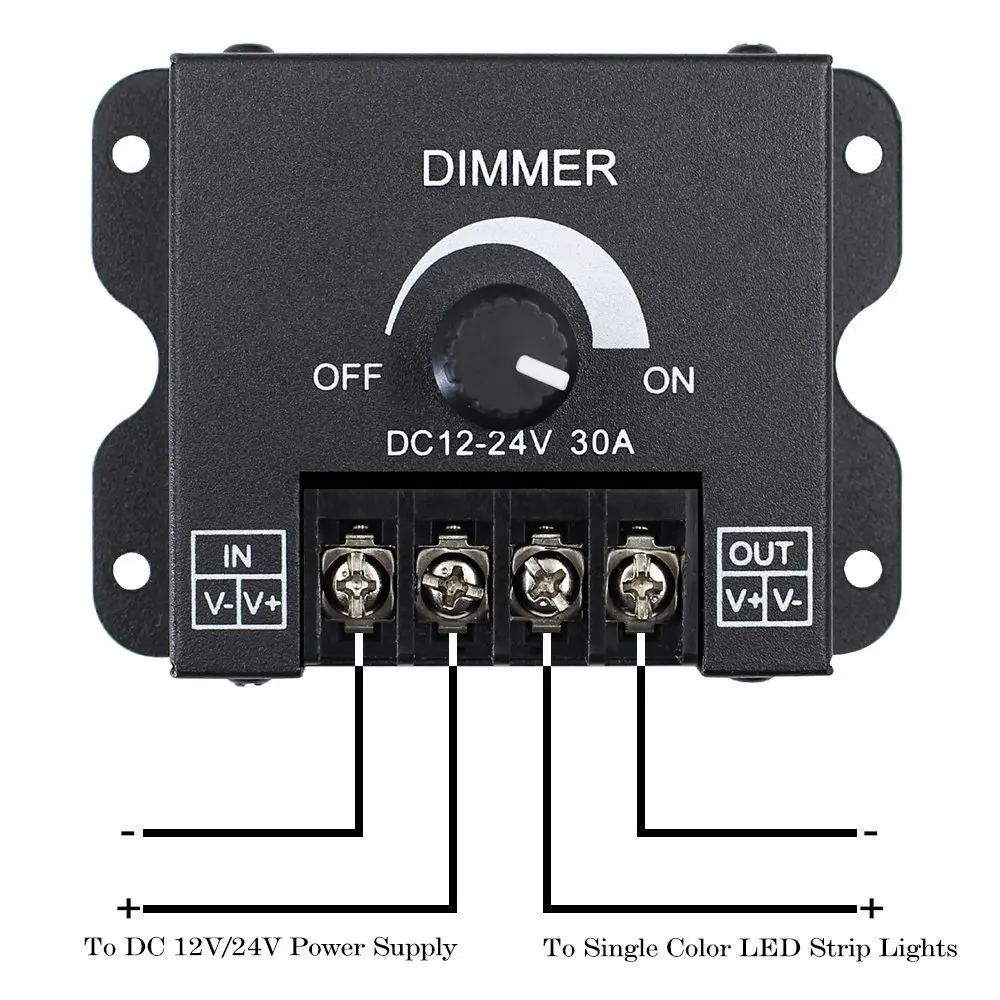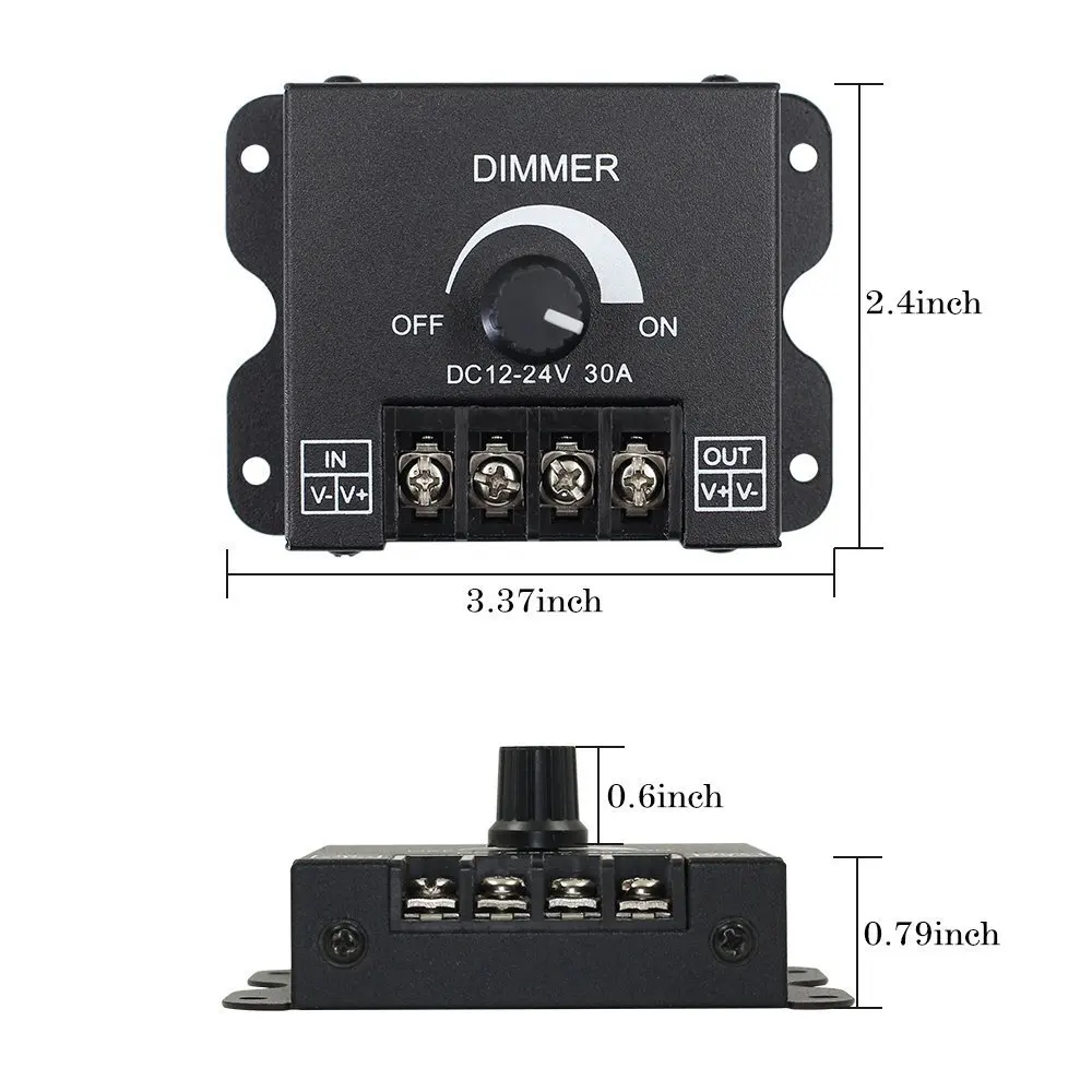 LED Dimmer DC 12V 24V 360W 720W Knob dimmer 30A Strip Driver Single Color Light Power Supply Controller 5050 3528ss