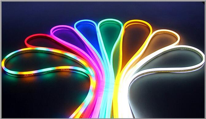 RGB LED Neon Light is the latest decorative light with the photoelectric technology. It combined Neon light controller with Tricolor (RGB) LED light source, having the characteristics of the full color gradual changing of LED Digital Tube and dynamic brightness of neon light, as well as the effects of synchronous gradual full color changing, skip changing, water flow changing, pursuing and sweeping and so on. Its appearance will replace LED digital Tube series and LED rope light series completely.