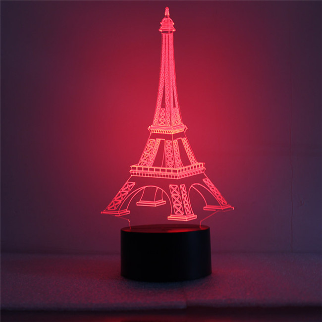 indoor decoration christmas 3D Romantic France Eiffel Tower Night LED 7 color changing desk led night lamp