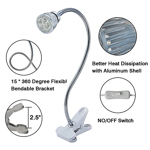 LED Grow Lights, 5W LED Clip Desk Lamp with 360 Degree Flexible Gooseneck Light for Office, Home, Indoor Garden Greenhouse