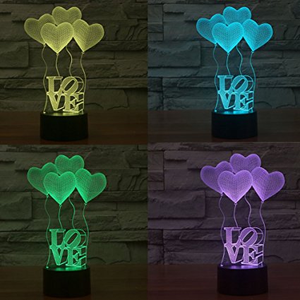 LED Color Gradual Change Acrylic Table Light, Valentine 3D Amazing Visualization Illusion Desk Lamp