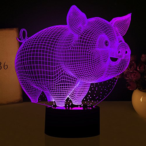 3D Abstract Animal Cutely 3D Little Pig Lamp Creative Night Light 7 Color Change LED Table Desk Lamp with USB Charger