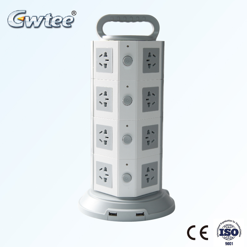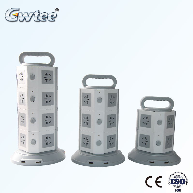 usb charger "s Name | 13A surge protector 3 pin plug USB vertical round tower socket with overload protection |
