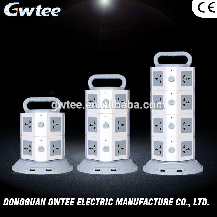 Gwtee multiple outlets Top Quality Bottom Price tower travel plug with usb socket GT-5