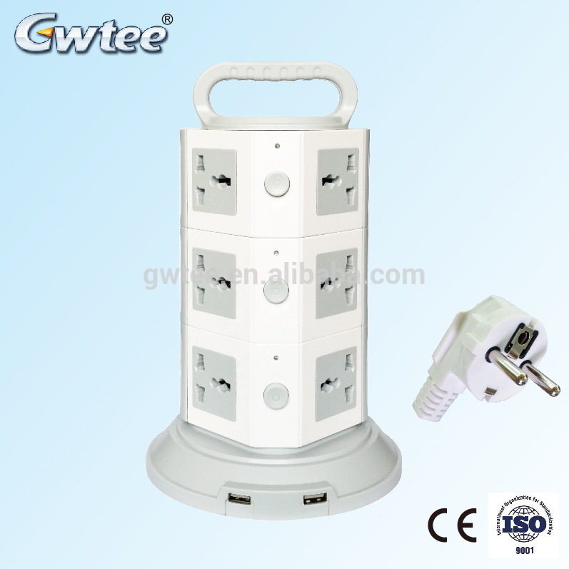 Tower extension socket with spike protector, vertical socket with usb