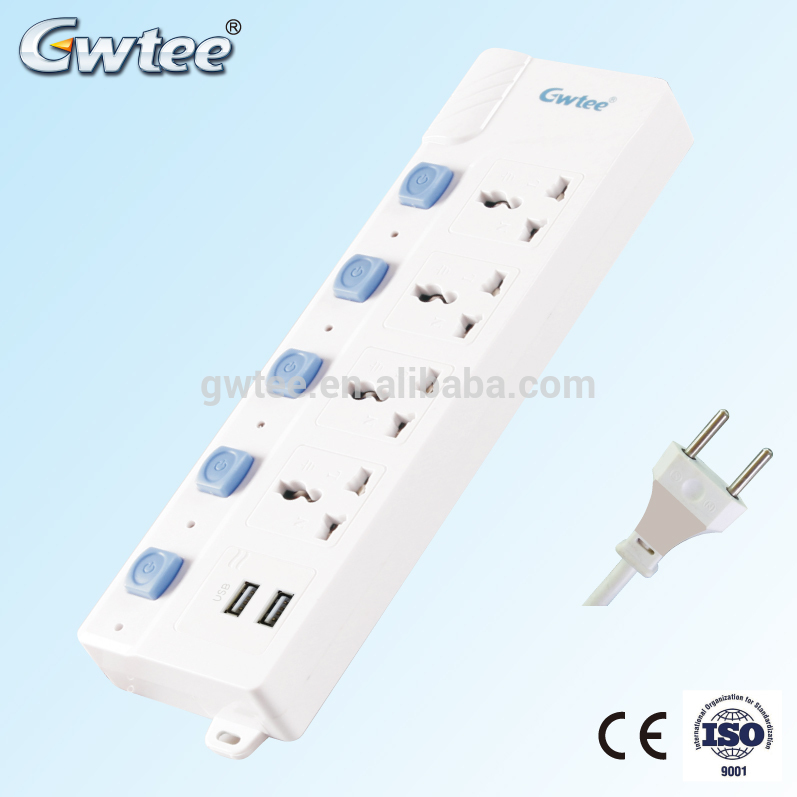 5 way outlet universal electrical extension power strip overload socket