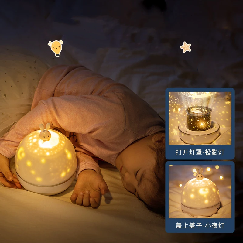 2020 new cute rabbit gifts Starry cosmo rotating led projector night light for kids