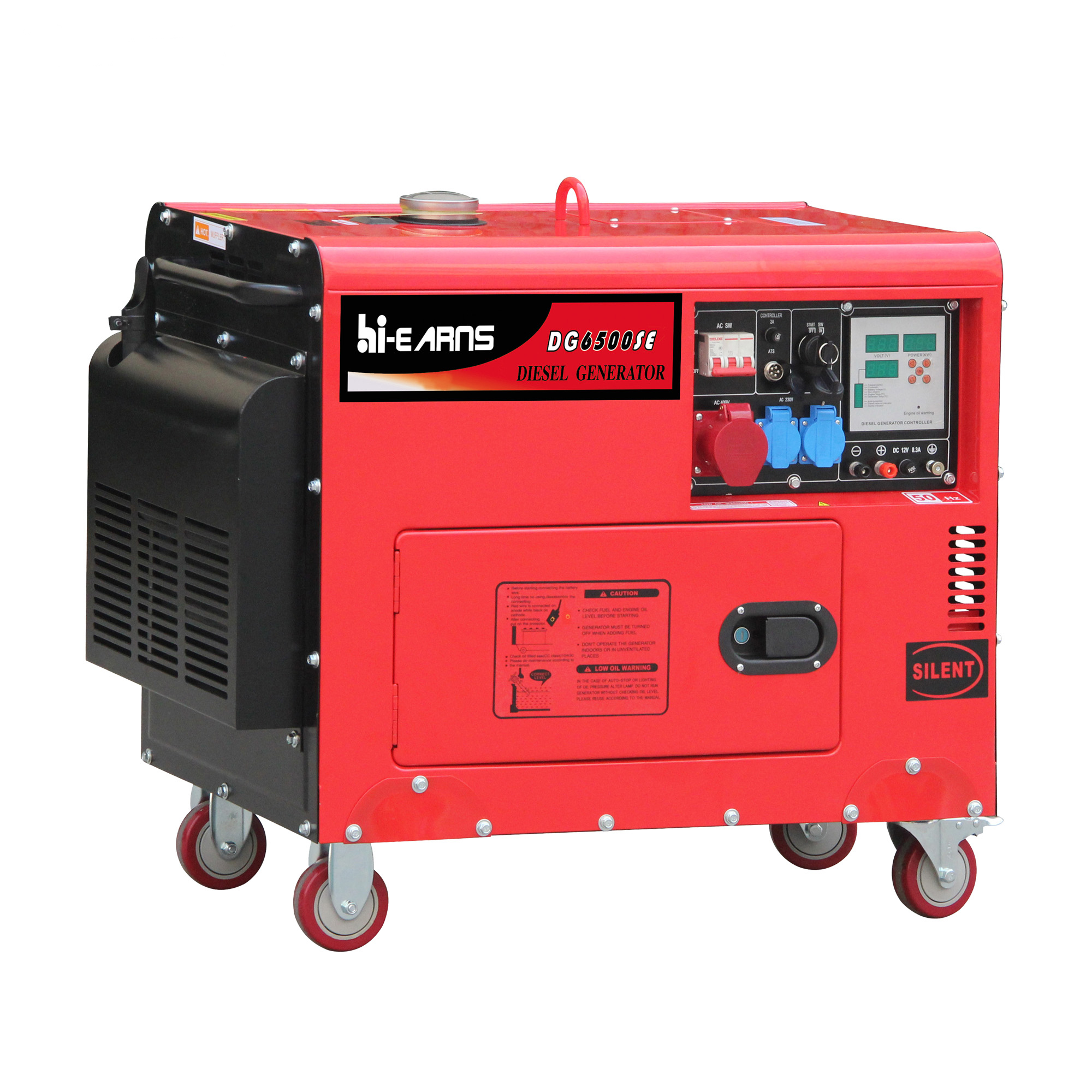 5KW portable silent diesel generator with four side wheels and digital panel
