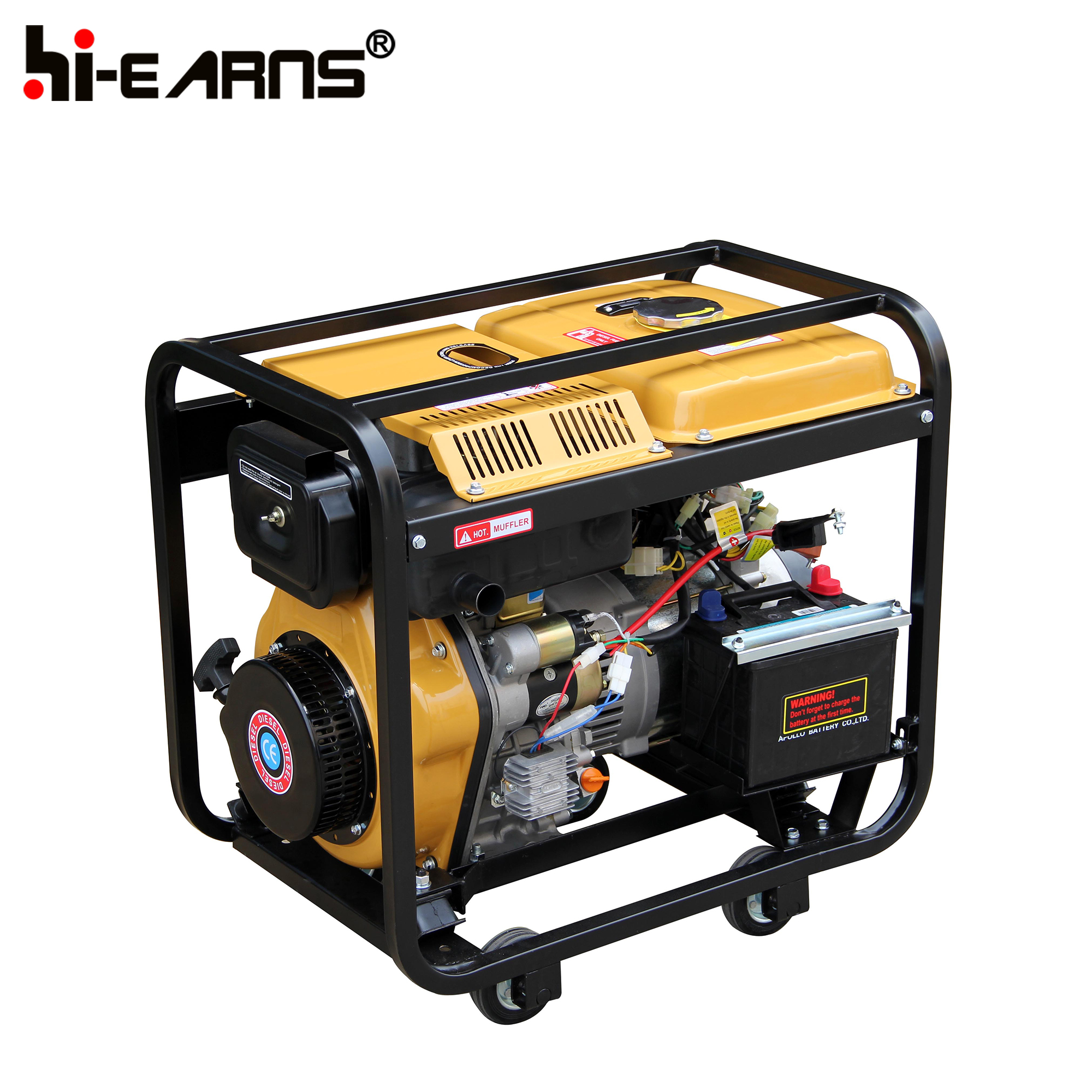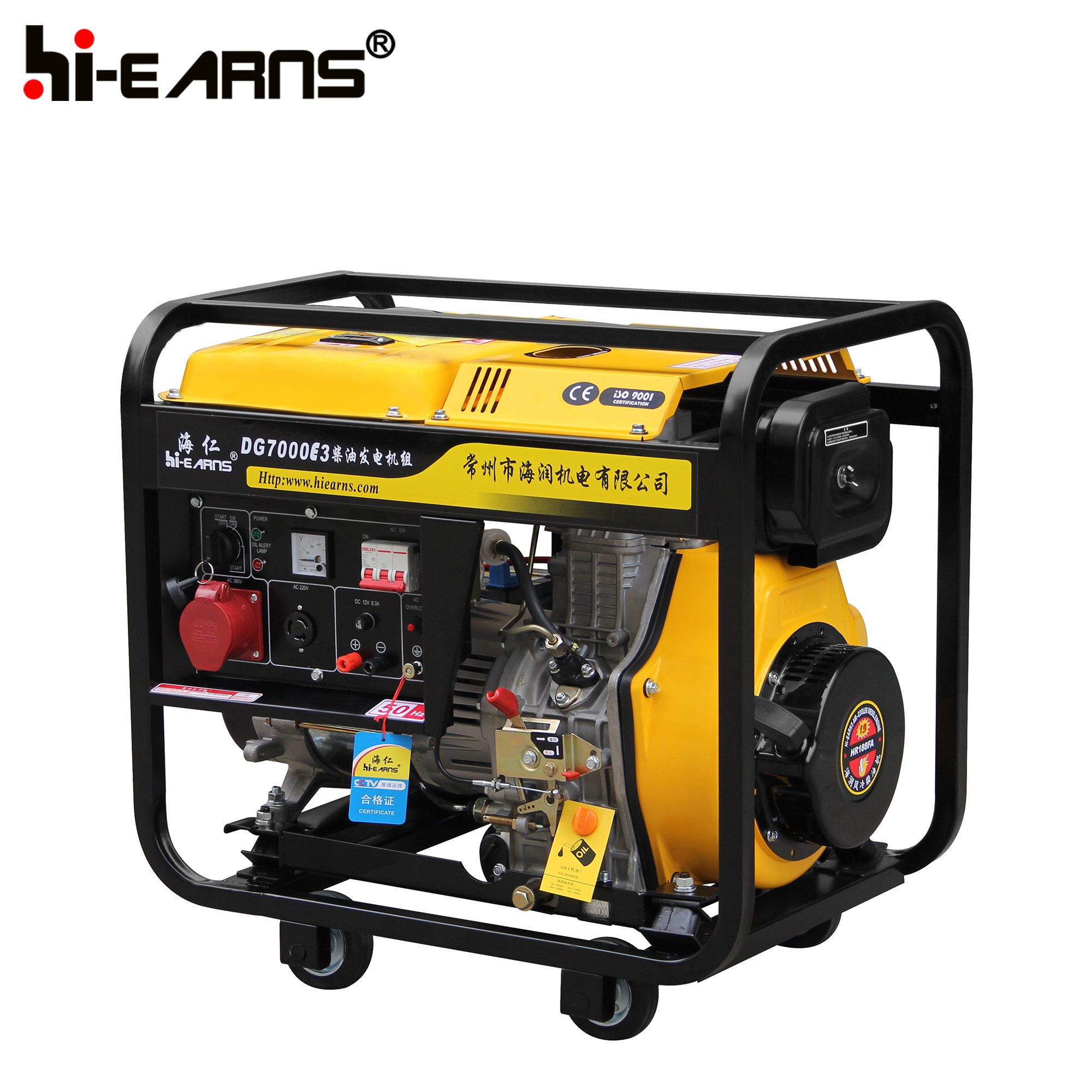 5.5KW portable air cooled with wheels open frame diesel generator
