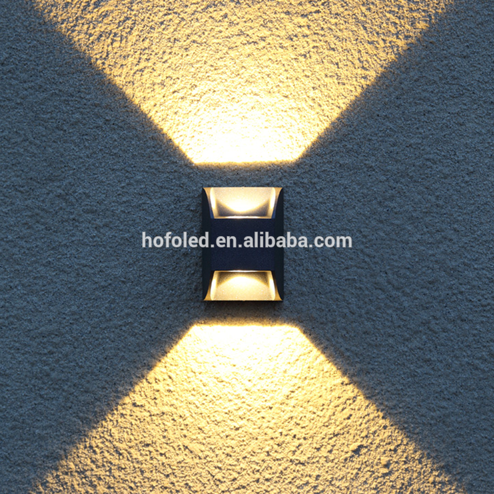 This is a modern up and down outdoor led wall light with down and up lighting. The die cast aluminium is complemented by sandblasted polycarbonate to prevent dazzle and give the lighting fixture an extra rigid effect. Its compact and two rectangular shape appearance looks more fashion and popular to meet modern city design request, without compromising the quality of light.