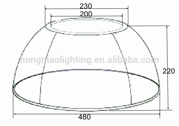 19"" high bay pc reflector top hole diameter 230mm,top inner circle diameter 200mm,height 220 mm,bottom diameter 480mm