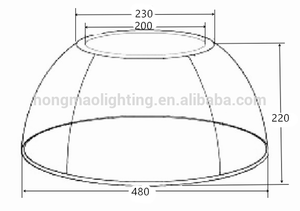 19"" high bay pc reflector top hole diameter 230mm,top inner circle diameter 200mm,height 220 mm,bottom diameter 480mm