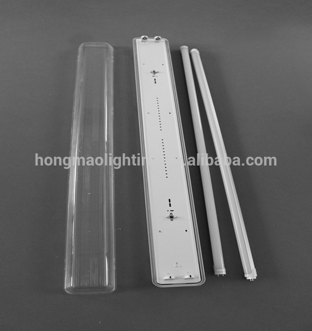 Tri proof light housing with double T8 tube, transparent line cover,transparent and milky cover available,PC buckle and stainless steel buckle available