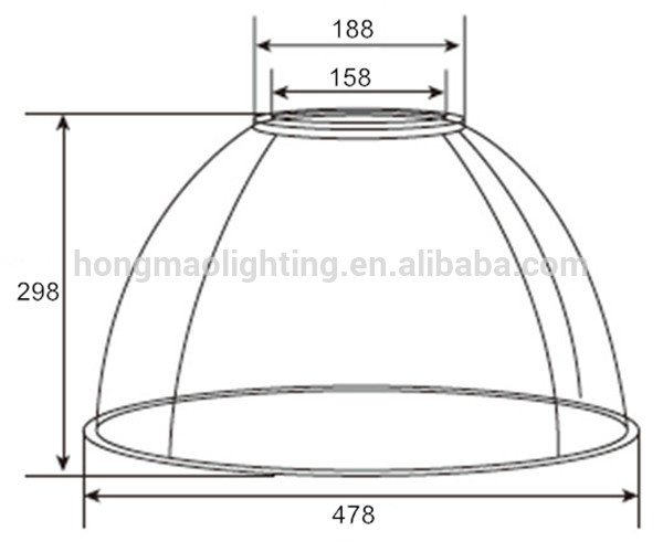 19"" high bay pc reflector top hole diameter 188mm,top inner circle diameter 158mm,height 298 mm