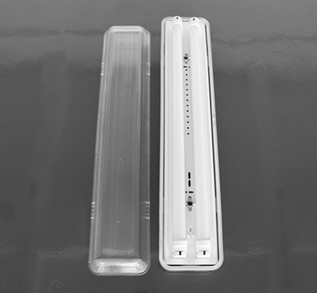 Tri proof light housing with double T8 tube, transparent line cover and buckle show,PC material buckle and stainless steel buckle are available