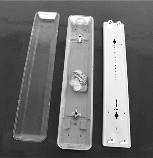Tri proof light housing with double T8 tube, transparent line cover and buckle show,PC material buckle and stainless steel buckle are available