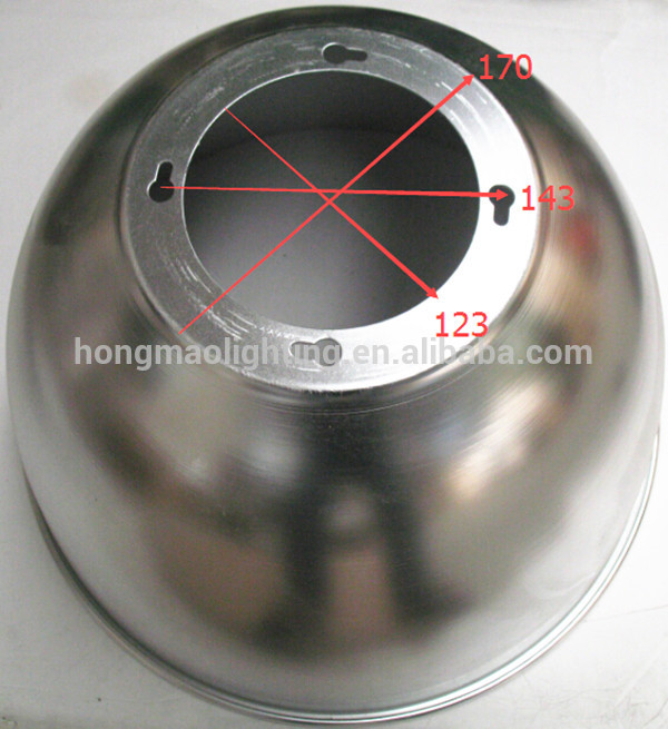 The high bay 16"" aluminum reflector upper diameter 170mm, upper inner circle diameter 123mm, there are 4 holes in the top part,hole diameter can be customized