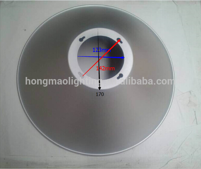 Led high bay light 20"" aluminum reflector upper diameter 170mm, upper inner circle diameter 123mm, two opposite installation hole diameter 143mm, there are 4 holes in the top part,hole shape and diameter can be customized