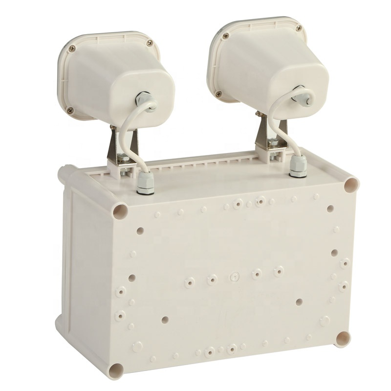 This IP65 Rechargeable Twin Spot LED Emergency Lights provides over 3hrs emergency lighting after AC power goes out.