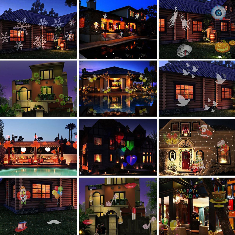 Projector Lights 12 Pattern Gobos Garden Lamp Lighting Waterproof Sparkling Landscape Projection Light for Decoration Lighting on Christmas Halloween Holiday Party