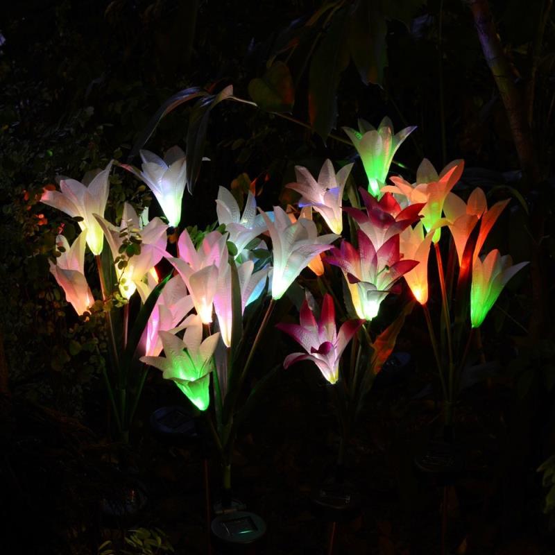 Lily shaped stake light with 7 color-changing. Perfect as path lights and in-ground lights.