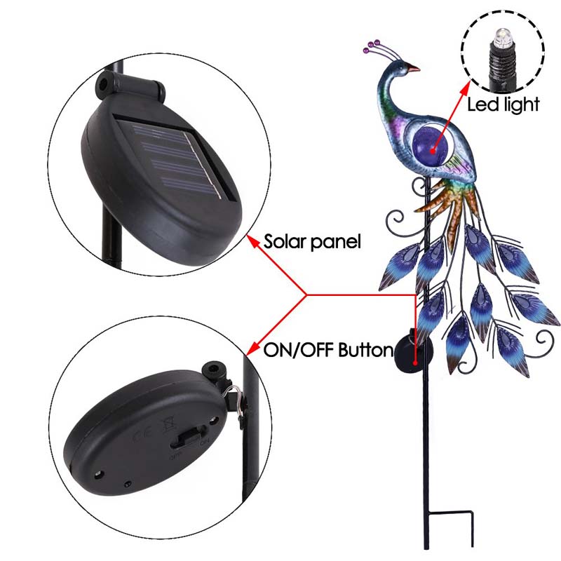 1). UNIQUE DESIGN: peacock solar light made the garden more vivid and bright, creating a more intimate atmosphere, whether it is day or night can be well decorated garden.