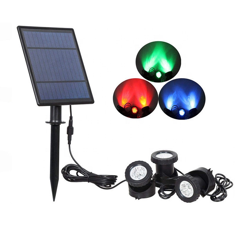 solar spotlight ip65 Features: Powered by solar energy, no AC or DC power needed. 3 pieces RGB spotlight with color changing that give you an excellent visual effect. Each piece of spotlight has 6 leds with ultra-bright RGB light. Environmental-friendly products, high energy conversion rate. Can be switched manually with on/off switch. Easy installation, adjustable lighting angle. It can be widely used for lighting and decoration of roads, courtyards, gardens, pools, pond etc.