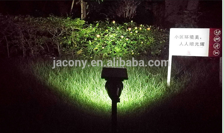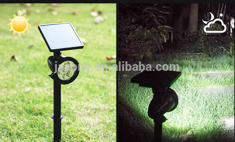 This solar spot light has 4 RGB LED,which can be controlled change to any one of 8 color,it includes: Color changing function , fixed color , Timer, and brightness adjustable.