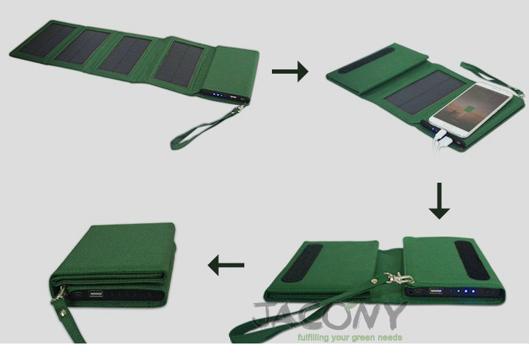Solar Powered Battery Charger LED Lamp Foldable & Portable Handbag Design
