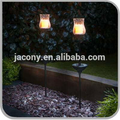 Outdoor Rechargeable Solar Powered LED Flickering Glass Candle Stake Light (JL-8608)