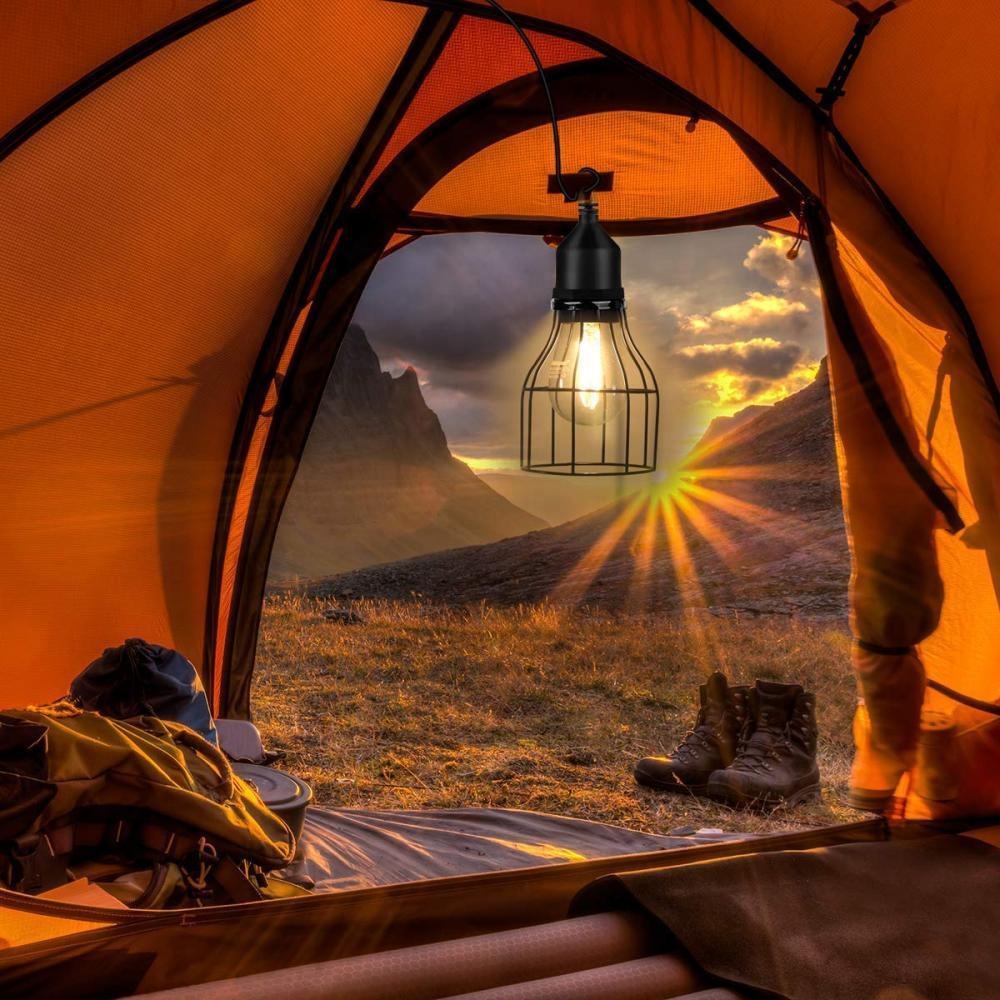 Vintage Hanging Metal Cage Solar Pendant Light with E27 Bulb Outdoor Waterproof
