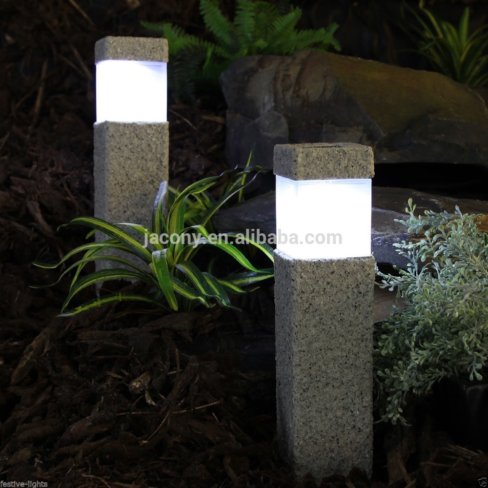 Square Stone Effect Solar Powered LED Garden Post Bollard Lamp for Garden Decorative (JL-8575)