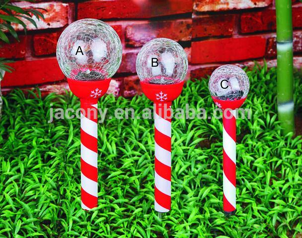 Solar Pathway Lights Christmas Candy Cane Crackle Color-Changing Glass Ball Holiday Landscape Lighting (JL-8521)