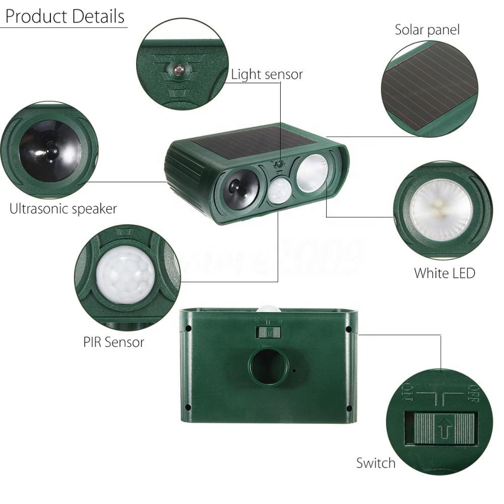Solar Powered Waterproof Animal Repellent Operated Motion Activated Waterproof Pet Cat Repellent, Ultrasonic Animal Repeller