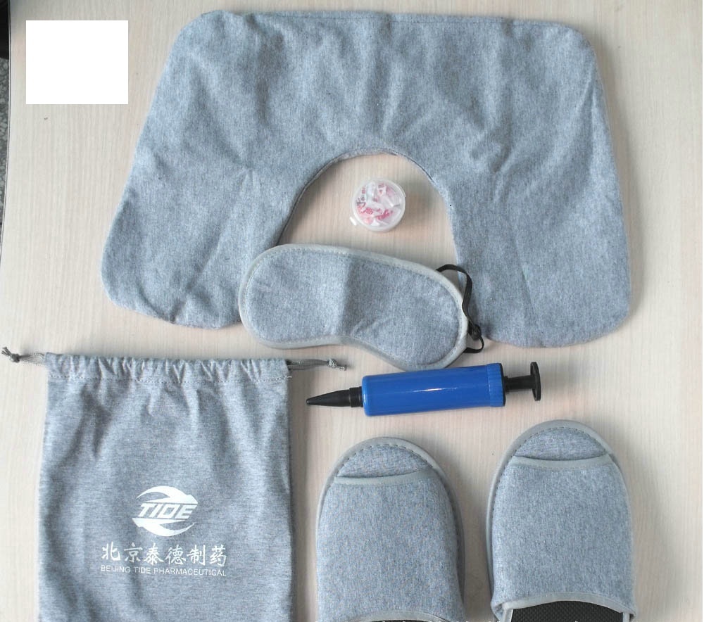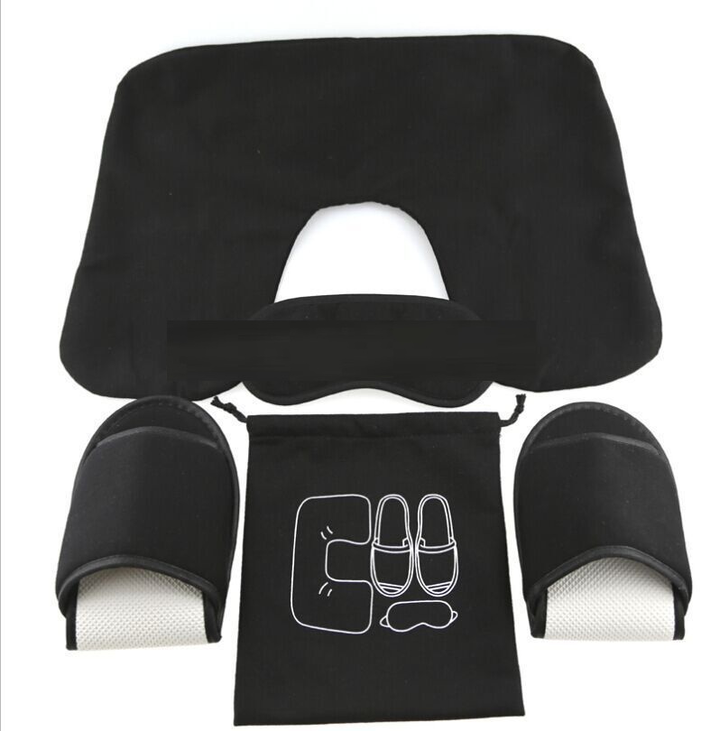 Product: portable 5 in 1 travel set neckpillow earplug slipper and pocket