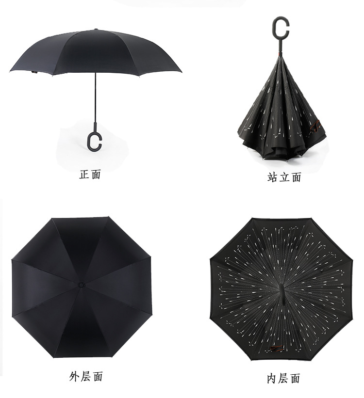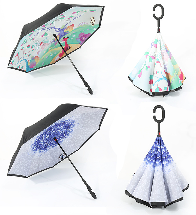 Windproof Reverse Folding Double Layer Inverted Chuva Umbrella , C-Hook umbrella, umbrella with C handle