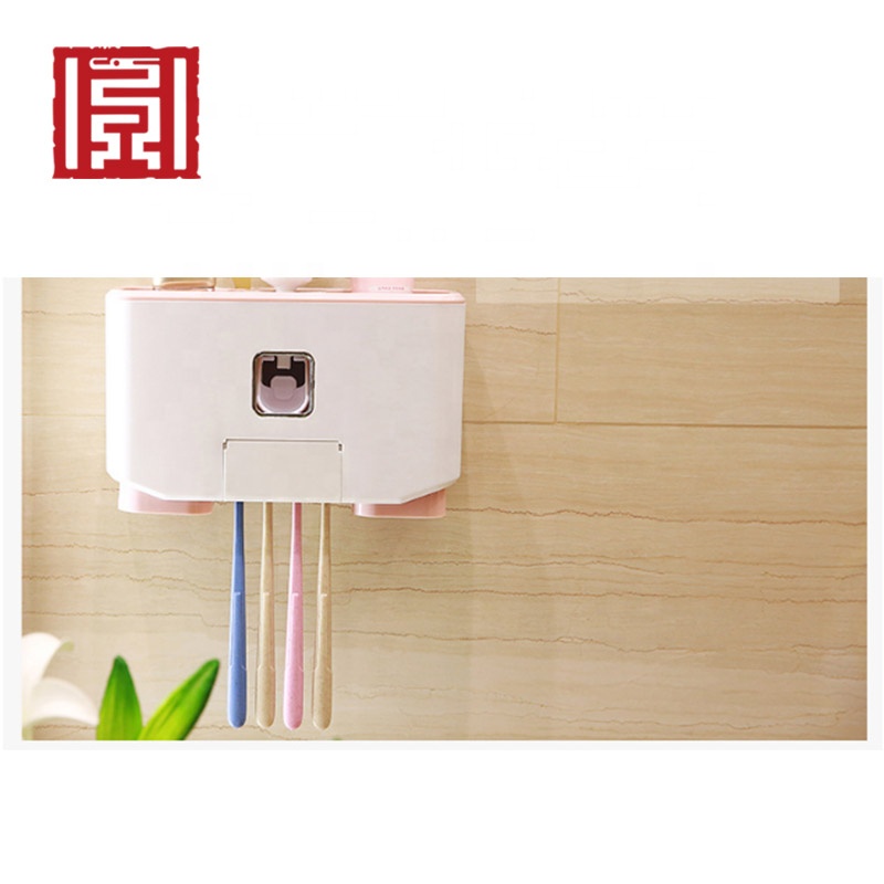 - 1 set toothpaste automatic dispenser/color box for Automatic Dustproof Toothpaste Dispenser with Wall Mounted Toothbrush Holder Kids Hands Free Toothpaste Squeezer 3 Brushes