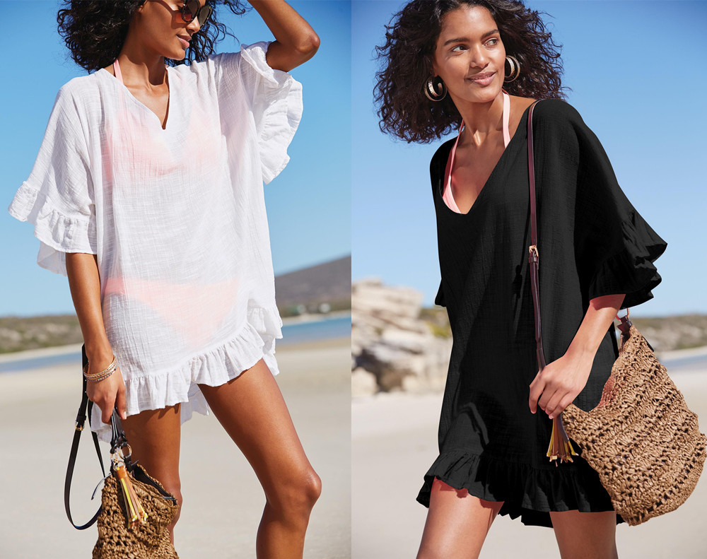 | Product name | Amazon Hot Sell Flounce V Neck Bikini Black Beach Cover Up Beachwear |