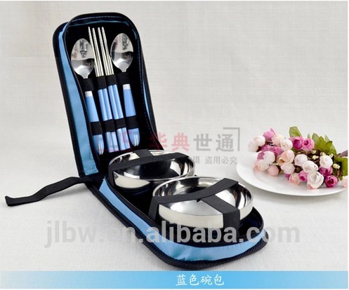 High quality 304 stainless steel travel cutlery set with spoon chopsticks bowls for two people